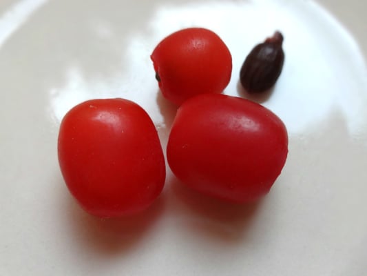 Alle Pflanzenteile sind giftig, ausgenommen der saftigen roten Frucht. Die kann man essen, sie ist süß und wassrig saftig.