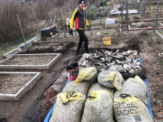- Beeteinrandungen aus Beton mit dem Krampen herausausgraben (was sich als ziemlich schwierig gestaltete)