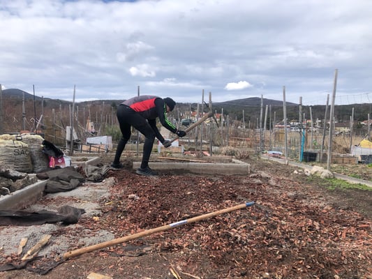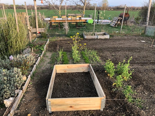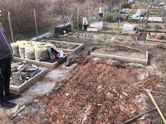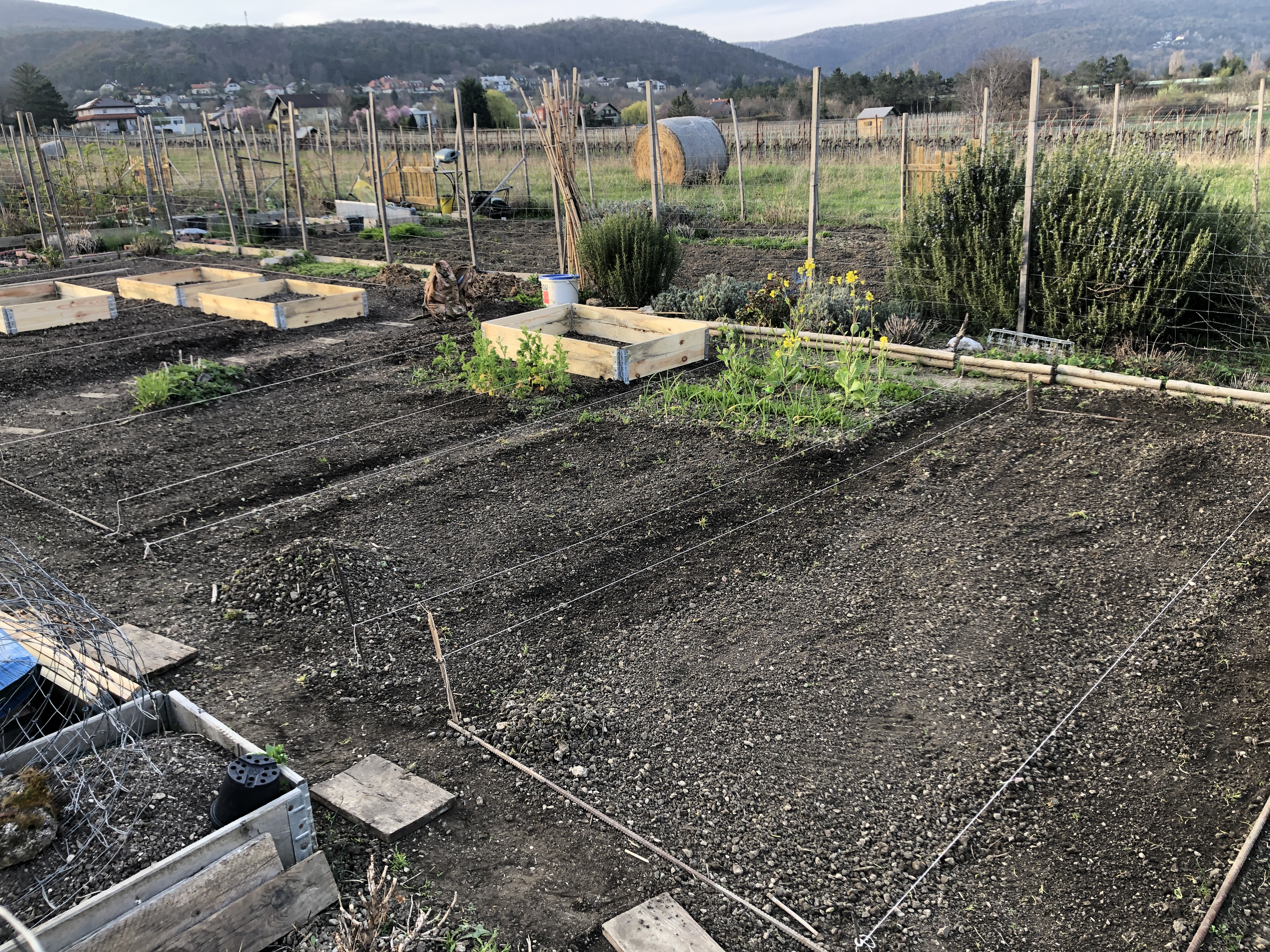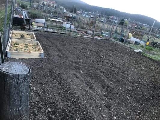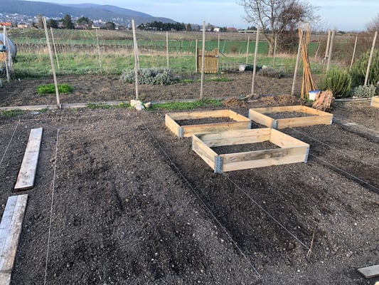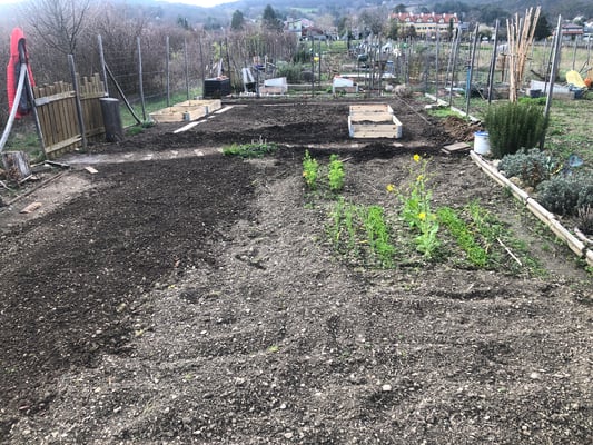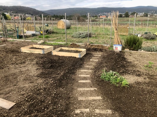 Die anderen Beete werden für später vorbereitet und ebenfalls verbessert, dort wo später die Tomaten wachsen sollen kommt noch Bokashi dazu (fermentierte Küchenabfälle).