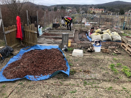 - Rindenmulch abschaufeln (eine Schicht von ca. 15cm)