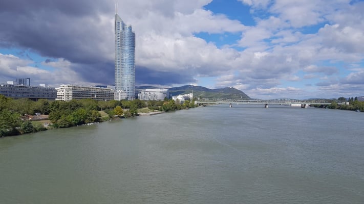 Mit der Reichsbrücke geht es noch einmal über die Donau zum Mexiko Platz.