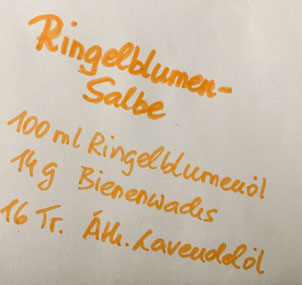 - selbstgemachtes Ringelblumenöl (Blüten eingelegt in Jojobaöl)