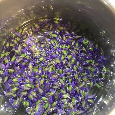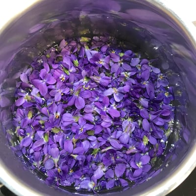 - Dann die Veilchen dazugeben und über Nacht stehen lassen.
